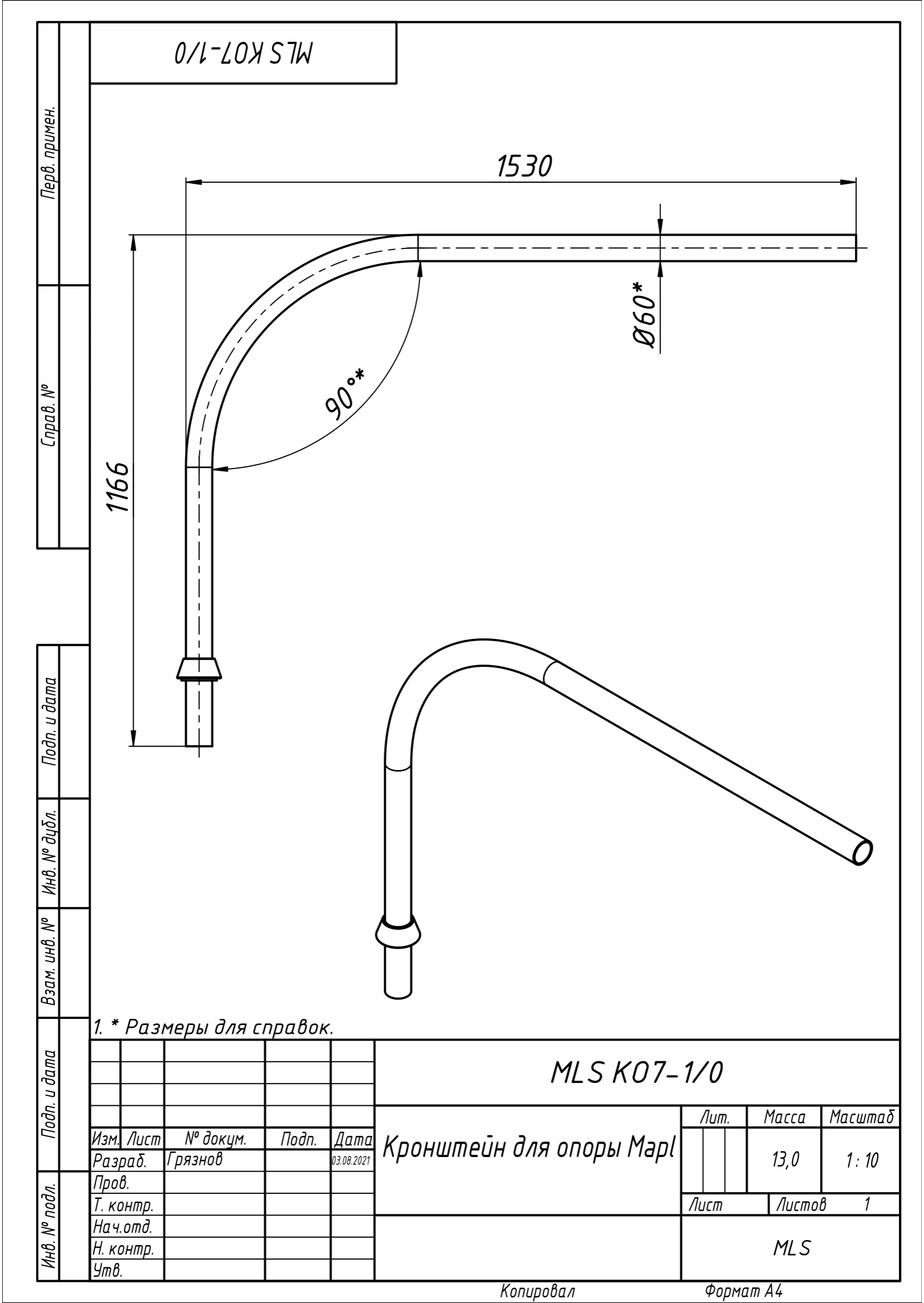 | Код изделия | Вынос, мм | Масса, кг | Материал | Покрытие изделия | Кол-во мест для установки световых приборов |