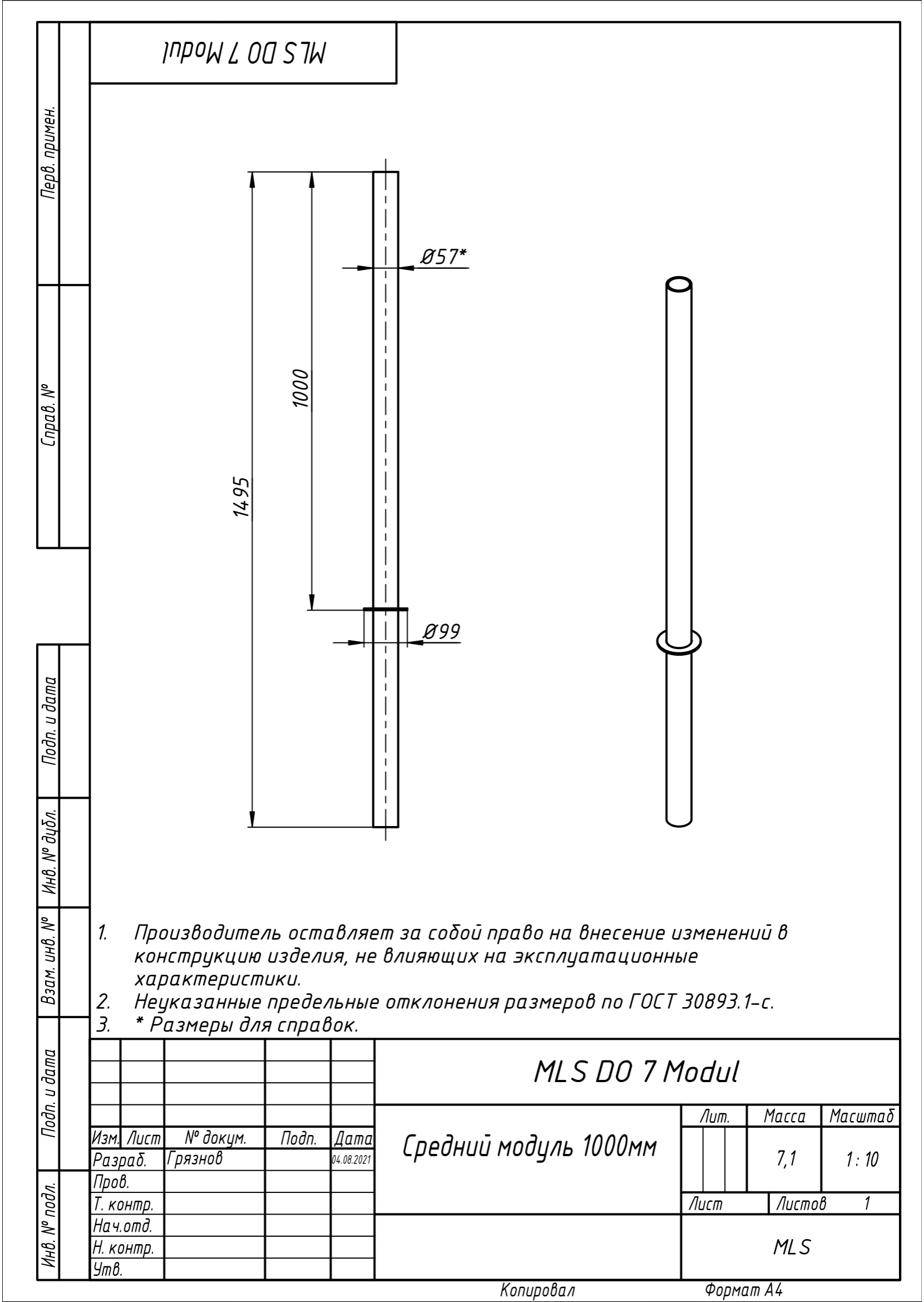 | MLS DO 7 Modul | 1000 | 7,1 | Сталь | Цинк, порошковая окраска |
