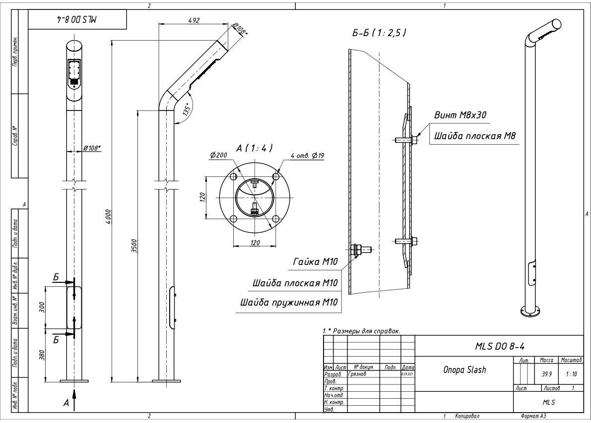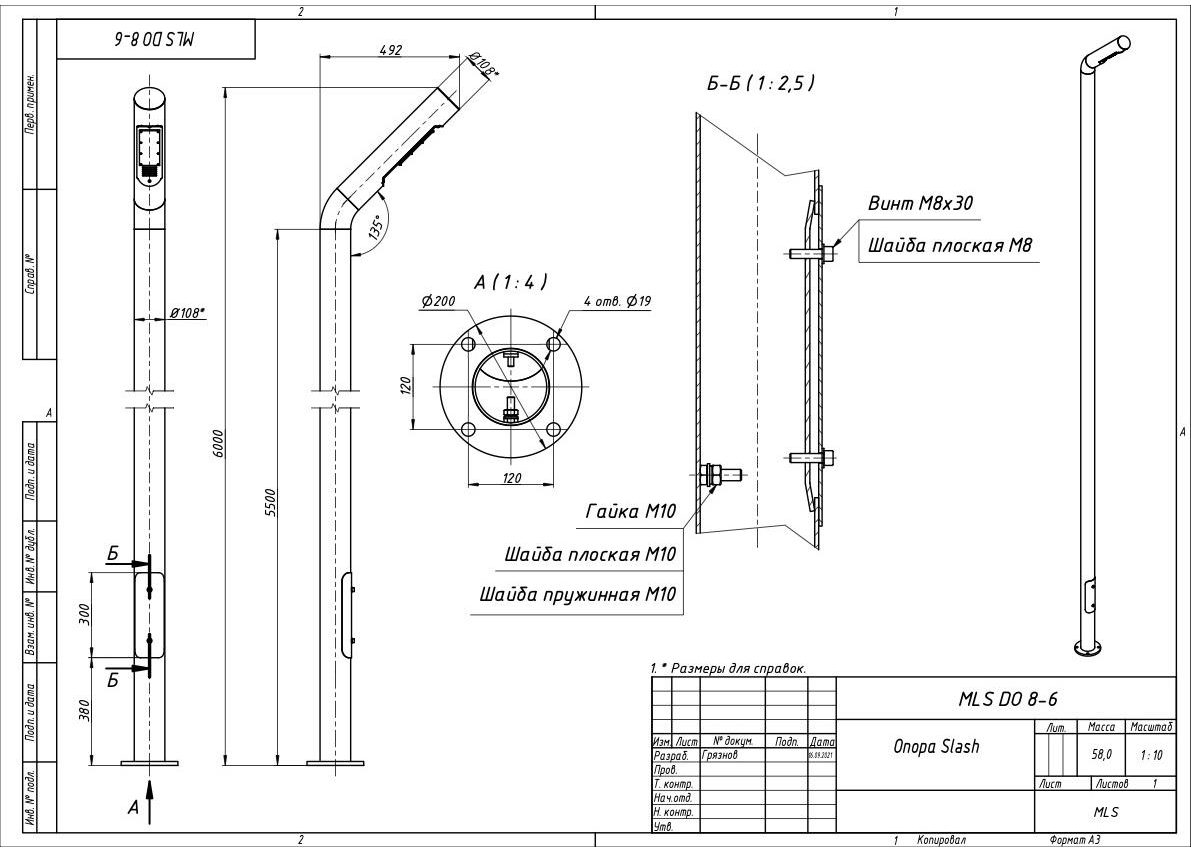 Декоративные опоры Slash устанавливаются на фланец закладной детали фундамента и фиксируются болтовым соединением (размер резьбы болтов М16). Подходящие фундаменты: MLS FT-108-15/4, MLS FK-15/4.
