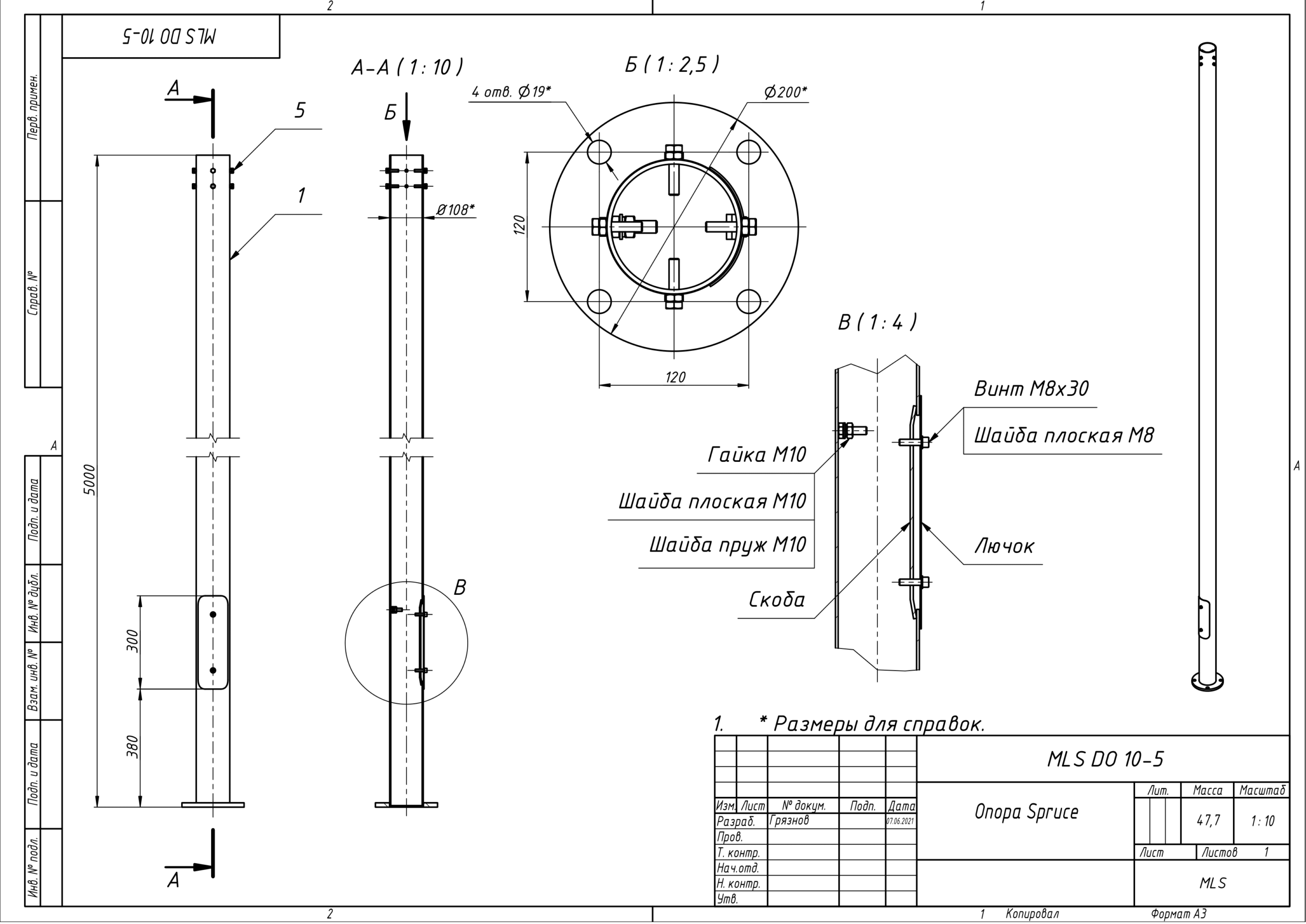 Внимание! На опору не допускается установка дополнительного оборудования!