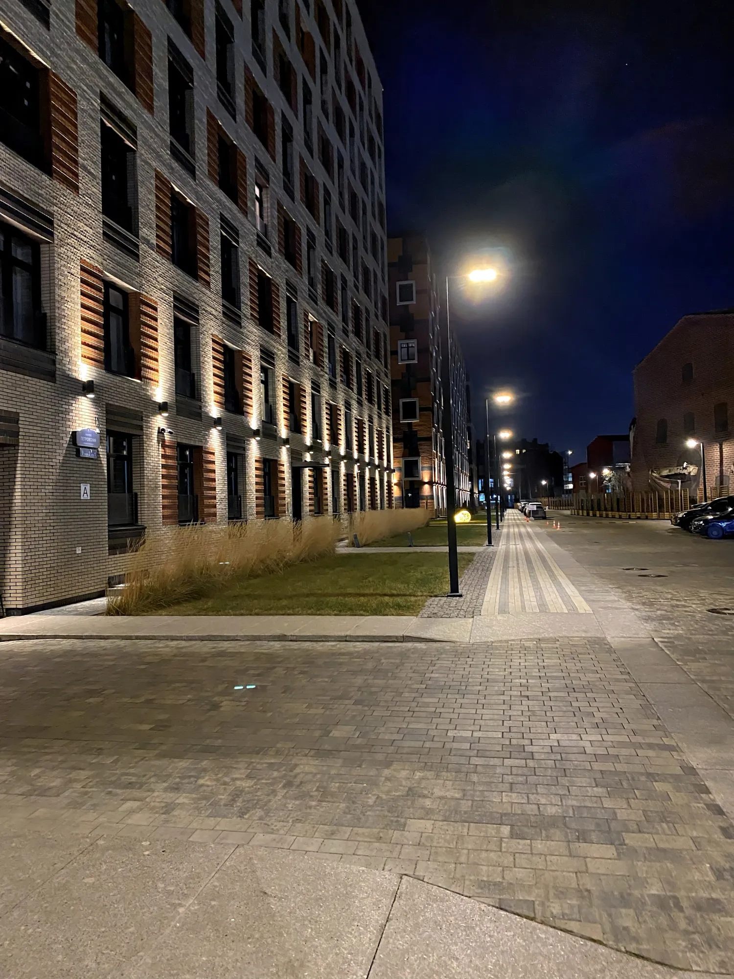 Реализована автоматизированная система управления наружным освещением (АСУНО) на базе контроллеров DigiCity. Для территории выбраны стильные торшеры «Тотем» и опоры «Тверь» с теплым светом (3000К), создающие уютную и приватную атмосферу.